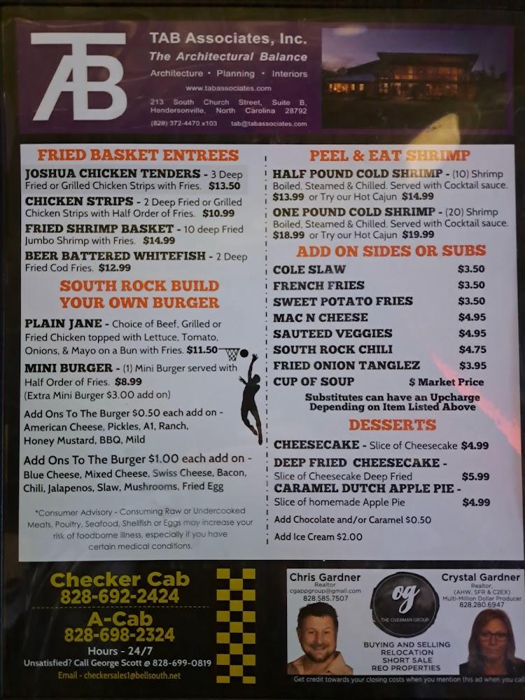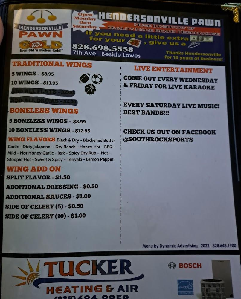 Welcome to South Rock Sports Grill, your ultimate destination for delicious food and exhilarating sports! Located in Hendersonville, NC, we offer a vibrant atmosphere where families can enjoy hearty meals, from grilled favorites to refreshing beverages. Our spacious patio and comfortable seating ensure a fantastic dining experience, whether you’re here for a casual lunch, dinner, or late-night snack. Catch your favorite games while savoring our famous chicken wings and craft cocktails. With convenient amenities like contactless delivery, free Wi-Fi, and wheelchair accessibility, South Rock Sports Grill is perfect for everyone. Join us for great food, live entertainment, and a welcoming vibe!